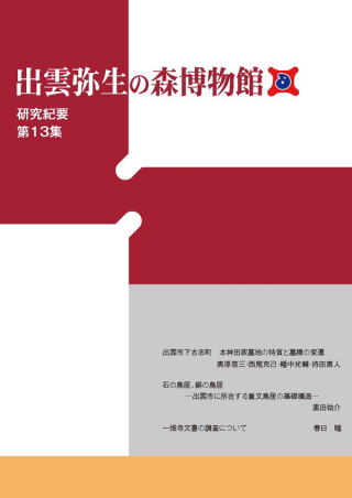 出雲平野の南西部(出雲市湖陵町常楽寺)に存在した、縄文時代後期の集落跡の発掘調査報告書です。調査では、西日本で極めて珍しい、北海道産の水銀朱で彩られた異形土器を確認しました。その他にも、遠隔地との交流を示す遺物が出土し、出雲に生きた縄文人の交流や交易の実態を映し出しています。集落跡や出土遺物などの基礎報告に加え、赤色顔料の分析や異形土器に関する検討など、論考も充実した報告書です。令和元年発行。 2,546円 史跡田儀櫻井家たたら製鉄遺跡