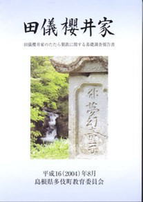 寛永年間から明治にかけて栄えた 田儀桜井家のたたら製鉄。その歴史的背景や金屋子神社などの関連遺跡をまとめた基礎調査報告書です。平成16年発行。 524円 田儀櫻井家たたら史料と文書目録