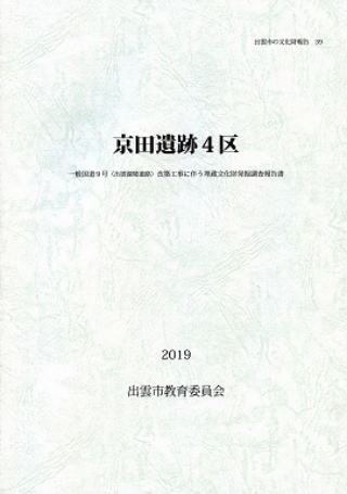 平成24年度からの3ヵ年にわたる調査成果をまとめた報告書です。弥生時代の集落遺跡や古墳時代終末期の横穴墓群、古代山陰道についての考察を含む内容となっています。また、三井Ⅱ遺跡の瓦窯についても考察しています。平成28年発行。 3,055円 京田遺跡4区