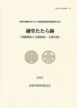 幕末から明治初年に出雲国で一二を争うほどの隆盛を極めた鉄山師の田儀櫻井家。本書は、田儀櫻井家が現在の出雲市多伎町口田儀の日本海沿岸部で経営した「海のたたら」である越堂たたらの総合的な調査研究報告書です。越堂たたら跡の高殿やその周辺の発掘調査の成果、関連する文献史料の調査成果、および文書目録を収録したほか、越堂たたらに関する論考を掲載しています。令和4年発行。 1,430円 ※価格はすべて税込です。